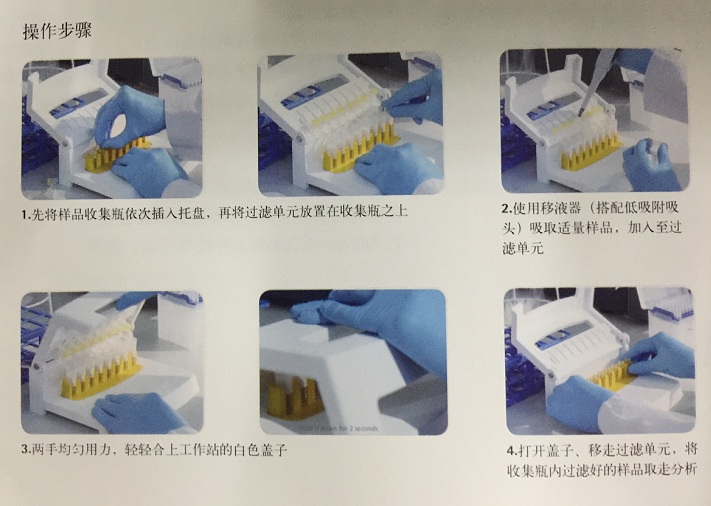 Claristep®***多可同時處理8個樣品,且不需要任何電源或真空/壓力源。用于單次過濾Claristep®過濾單元配有RC膜,適用樣品體積范圍是60 μL-600 μL,保留體積小于30 μL。經(jīng)過優(yōu)化的過濾單元既可以過濾有機溶劑,也可以過濾水溶液,具有廣泛的化學(xué)兼容性,與此同時對分析樣品成分的非特異性吸附極低。樣品與濾器和蓋子的接觸時間極短,進而確保獲得理想的無污染物干擾的分析結(jié)果。濾出液可被收集到任何外徑尺寸為12 × 32 mm 的樣品瓶中,用戶可根據(jù)樣品性質(zhì)和所采用的分析方法自由選擇適當(dāng)?shù)臉悠肥占俊?/P>