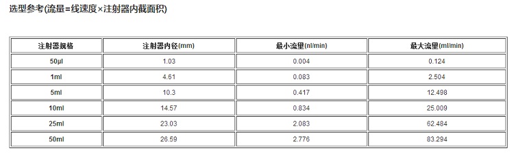 • 注射器選擇:內(nèi)置主要廠家,主要型號注射器供選擇;可使用自定義注射器,直接輸入注射器內(nèi)徑;
