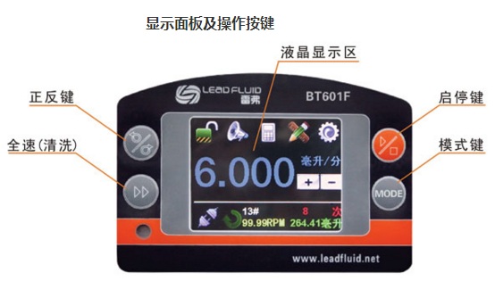 BT601F分配型智能蠕動泵流量范圍0.006~2900毫升/分鐘。采用彩色液晶和觸摸屏技術,操作界面簡單,直觀,明了。主要適用于各種復雜的液體定量分配,適用于精確計量和定量給料,可以實現(xiàn)高精度的流量傳輸控制。對液量分裝精度要求高時,使用液量分配模式更加方便;對產量要求高時,使用時間分配模式更加方便;需要將一定液體分裝為若干份液體時請使用復制分配模式。設置為流量模式時,完全等同于一臺流量型蠕動泵。為了減小不必要的風扇噪音,采用了智能溫控技術。在RS485通訊中,因為采用了MODBUS協(xié)議,更易于與其他控制設備如計算機,人機界面,PLC等連接。