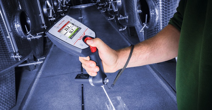發(fā)酵啤酒或葡萄酒領(lǐng)域可靠的便攜式密度計,因為其智能的振蕩器位置(潛在氣泡自動移到測量池外)。