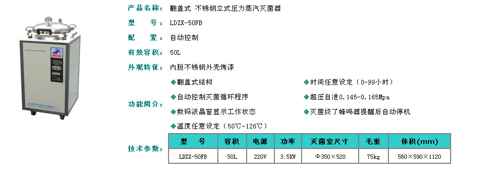 | 50L翻蓋型不銹鋼立式壓力蒸汽滅菌器 |