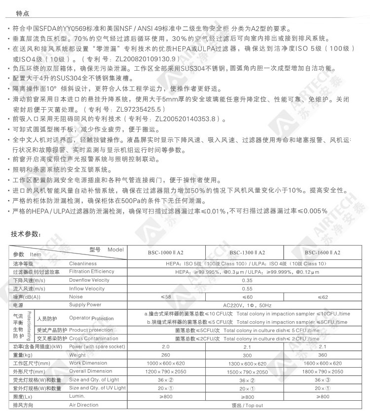 生物安全柜是用于生物安全實(shí)驗(yàn)室和其它實(shí)驗(yàn)室的生物安全防護(hù)隔離設(shè)備?梢苑乐褂泻腋∥⒘!馊苣z的擴(kuò)散;對(duì)操作人員、樣品及樣品間交叉感染和環(huán)境提供安全保護(hù)。 本公司生產(chǎn)的生物安全柜嚴(yán)格按照國(guó)家醫(yī)藥行業(yè)強(qiáng)制性標(biāo)準(zhǔn)YY0569-2005、美國(guó)NSF/ANSI 49-2002和日本JISK3800:2000標(biāo)準(zhǔn)進(jìn)行設(shè)計(jì)、制造和各類(lèi)檢測(cè)。除采用美國(guó)大流量顆粒檢測(cè)系統(tǒng)對(duì)過(guò)濾器進(jìn)行掃描檢漏和常規(guī)物理性能指標(biāo)檢測(cè)外,還專(zhuān)門(mén)建造了經(jīng)國(guó)外專(zhuān)家驗(yàn)證合格的國(guó)內(nèi)生物安全柜生產(chǎn)企業(yè)中唯一的微生物檢測(cè)實(shí)驗(yàn)室,對(duì)生物安全柜進(jìn)行生物驗(yàn)證測(cè)試。檢測(cè)人員都是經(jīng)日本有關(guān)機(jī)構(gòu)培訓(xùn)的專(zhuān)業(yè)人員,能最大程度保證產(chǎn)品質(zhì)量。 本公司生產(chǎn)的生物安全柜主要有BHC-ⅡA/B3(氣流70%循環(huán),30%排放)、BHC-ⅡA2(氣流70%循環(huán),30%排放)、BHC-ⅡB2(氣流100%排放)等系列。并采用優(yōu)質(zhì)高效空氣過(guò)濾器(HEPA)或超高效空氣過(guò)濾器(ULPA)供用戶(hù)選擇。 采用優(yōu)質(zhì)高效空氣過(guò)濾器(HEPA)時(shí): 過(guò)濾效率:@0.3μm 99.995%。潔凈度:ISO 5(100級(jí)) 采用超高效空氣過(guò)濾器(ULPA)時(shí): 過(guò)濾效率:@0.12μm 99.999%。潔凈度:ISO 4(10級(jí)) |