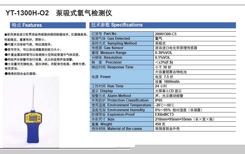 > YT-1300H-O2 泵吸式氧氣檢測(cè)儀