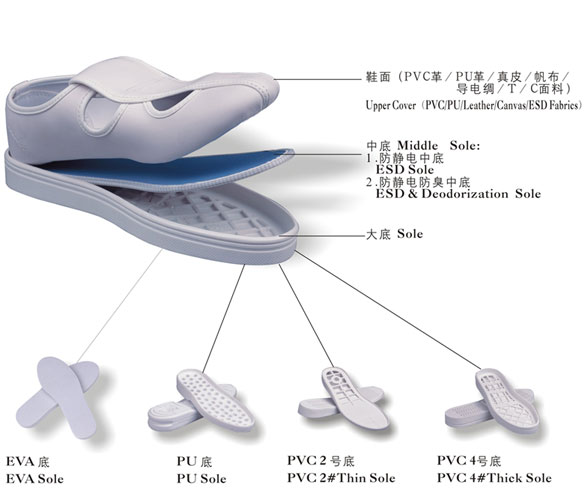 靜電鞋采用散電材料PVC或PU發(fā)泡材料制作鞋底,與鞋幫一體成型,然后進(jìn)行上線加固。能有效釋放靜電,同時與防靜電服一起構(gòu)成完整的防靜電體系。靜電鞋靈巧輕便,鞋底中層有防靜電EVA,緩解足部壓力,更加柔軟舒適,面料有:PVC革/革/真皮/帆布/導(dǎo)電綢/T/C面料。成品鞋整體美觀大方,且結(jié)實、防滑,具有優(yōu)良的耐磨性(高5倍于普通鞋底),更環(huán)保。是暢銷全球的高品質(zhì)靜電鞋。