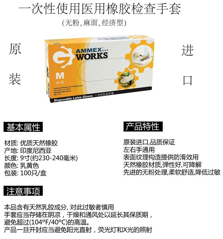 一次性乳膠手套(經(jīng)濟型,無粉,麻面)