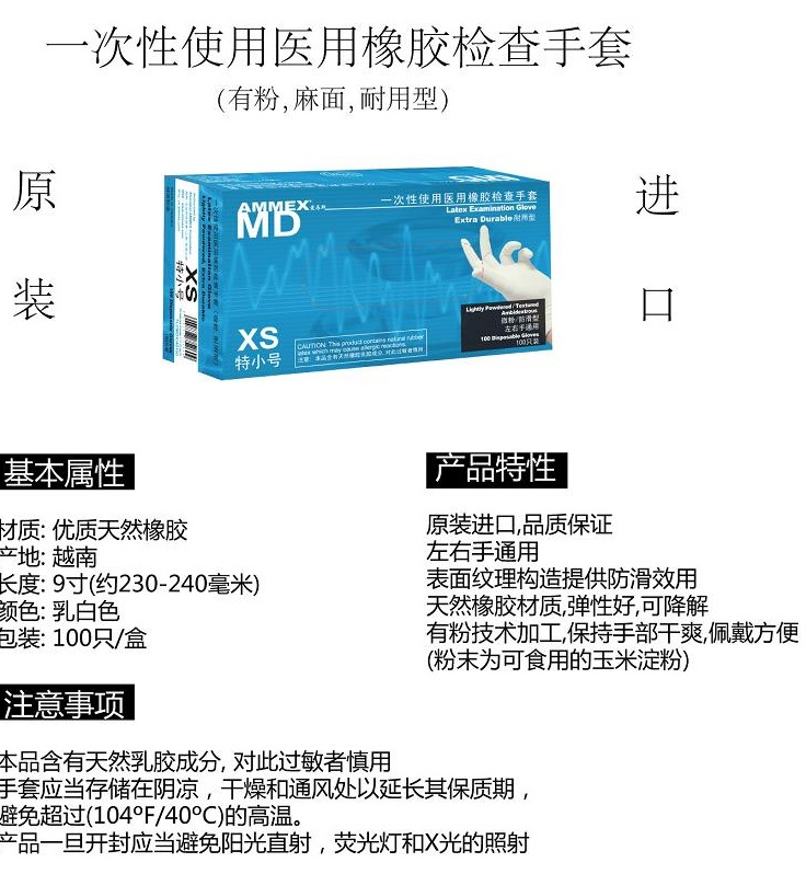 一次性醫(yī)用橡膠檢查手套(耐用型,有粉,麻面)