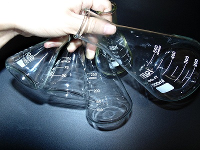錐形瓶一般使用于滴定實驗中。為了防止滴定液下滴時會濺出瓶外,造成實驗的誤差,再將瓶子放在磁攪拌器上攪拌。也可以用手握住瓶頸以手腕晃動,即可順利的攪拌均勻 。也可用于盛裝反應物,定量分析,回流加熱,而其外形則使它十分適合這些工作。其長頸部份除方便加上塞子外,亦能減慢加熱時的流失及避免化學物品溢出;至于其平而寬闊的底部則容許錐形瓶盛載更多的溶液、方便用玻璃棒攪拌及容許錐形瓶平放在桌上。