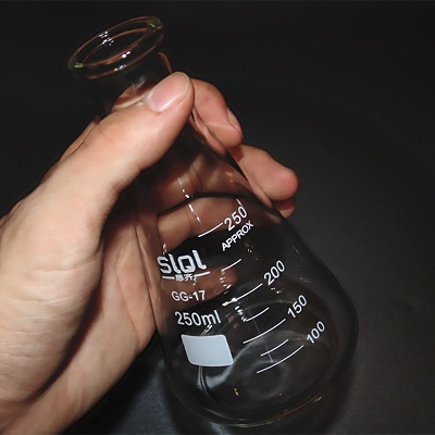 錐形瓶(beakerflask)一種化學實驗室常見的玻璃儀器。是硬質玻璃制成的縱剖面呈三角形狀的滴定反應器?谛 ⒌状,有利于滴定過程進行振蕩時,反應充分而液體不易濺出。該容器可以在水浴或電爐上加熱。外觀呈平底圓錐狀,下闊上狹,有一圓柱形頸部,上方有一較頸部闊的開口,有時可用由軟木或橡膠制作成的塞子封閉。瓶身上多有數(shù)個刻度,以標示所能盛載的容量。