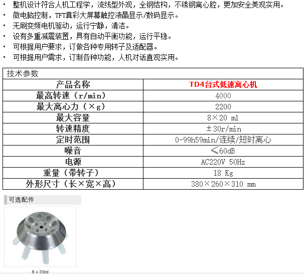 | 最大容量:8×20ml 最大轉速(r/min):4000 |