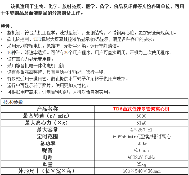 產(chǎn)品名稱:TD6臺式低速多管架離心機