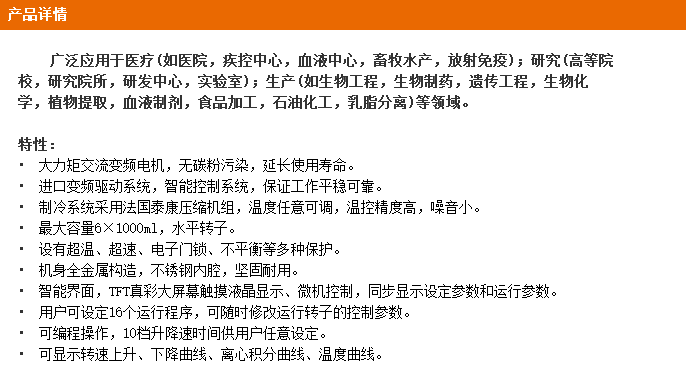最大容量:6×1000ml  最大轉(zhuǎn)速(r/min):6000