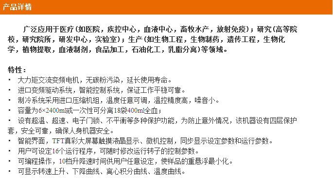 最大容量:6×2400ml  最大轉(zhuǎn)速(r/min):4600