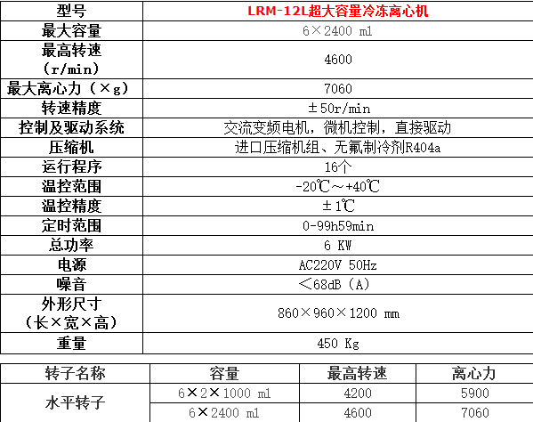 產(chǎn)品名稱:LRM-12L超大容量冷凍離心機