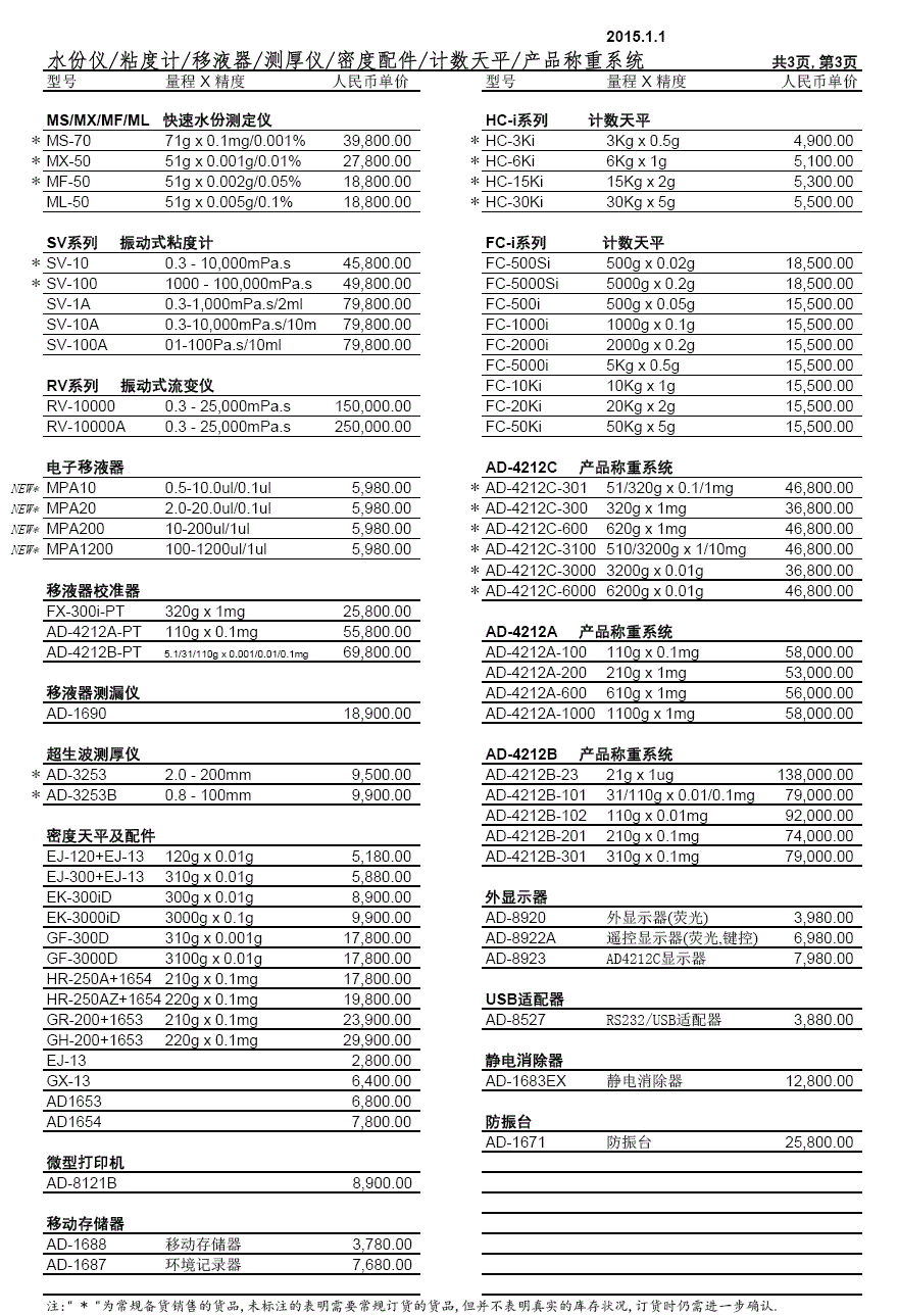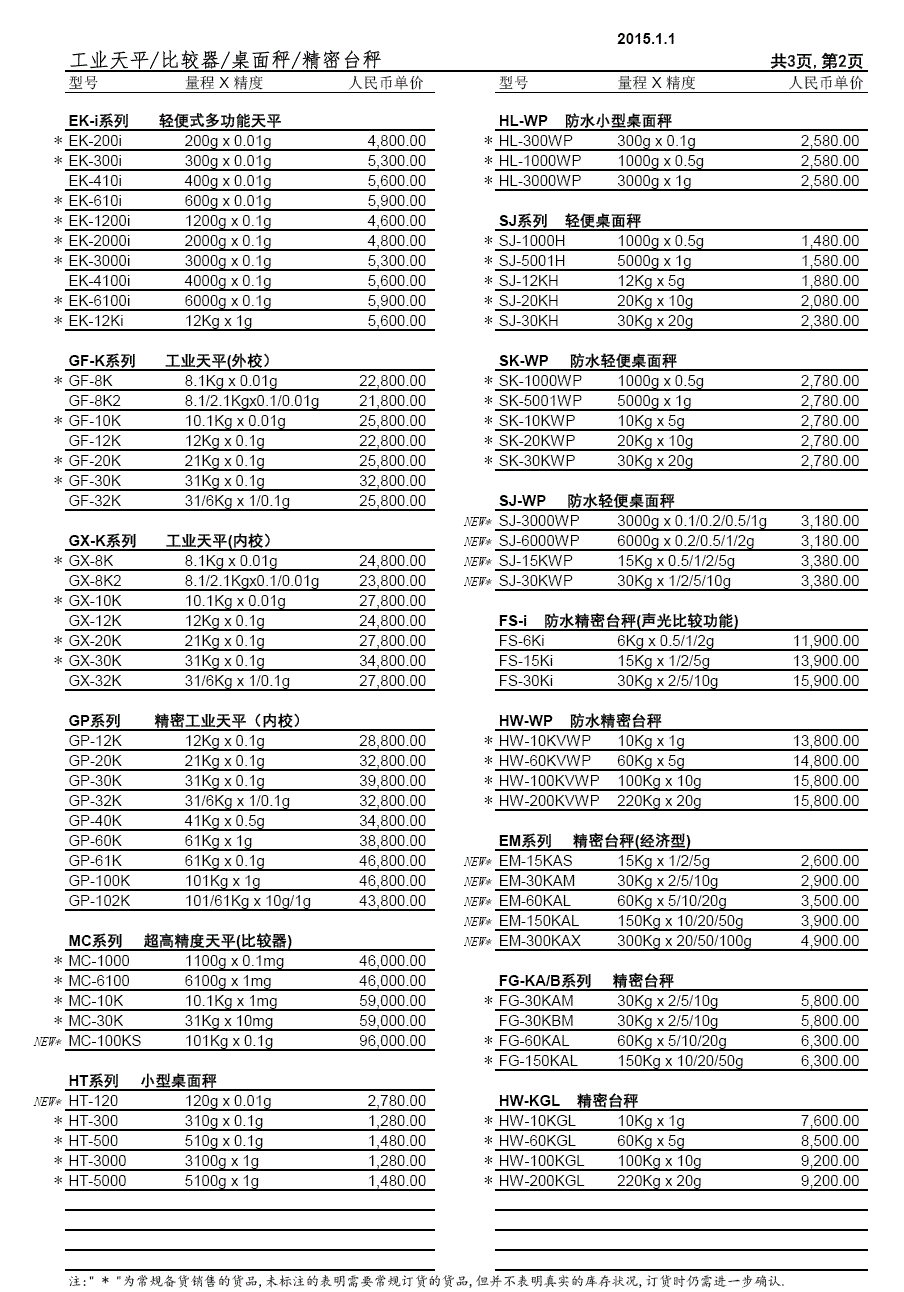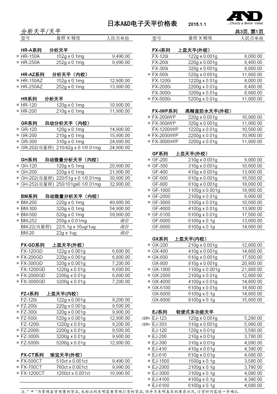 > 日本AND最新價格表