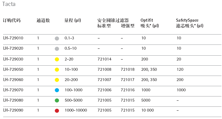 - 單通道型號(hào)涵蓋了 0.1 µl- 10 000 µl 的量程,多通道型號(hào)量程覆蓋 0.5 µl – 300 µl