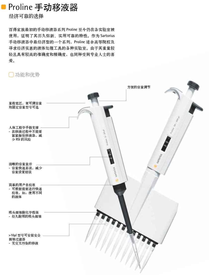 賽多利斯百得Proline 單道移液器 2-20ul,半支消毒