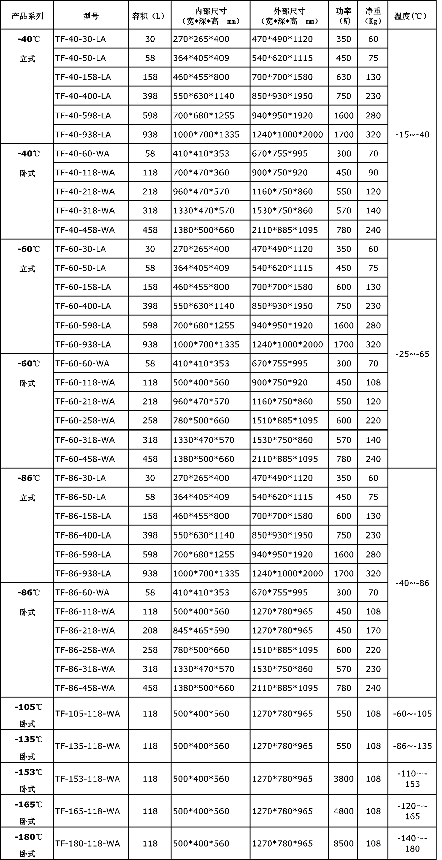 1.2 溫度范圍: -15℃~-40℃