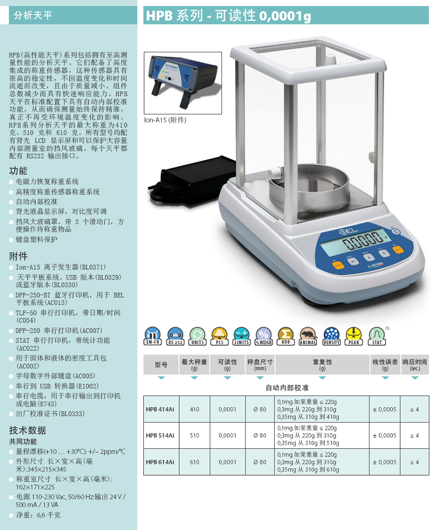產(chǎn)品型號:HPB 414Ai: 量程410g,精度0.1mg