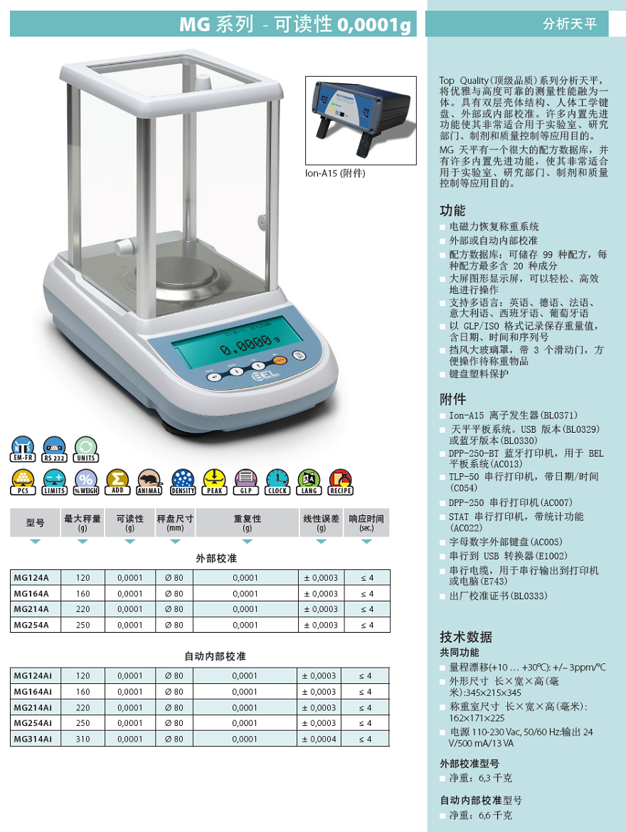 | 意大利倍爾MG124Ai分析天平,0.1mg/120g,內(nèi)校,大屏幕顯示,原裝進(jìn)口 |