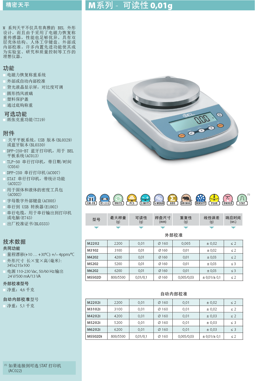 意大利倍爾M5502Di內(nèi)校精密天平,0.01/0.1g,800/5500g