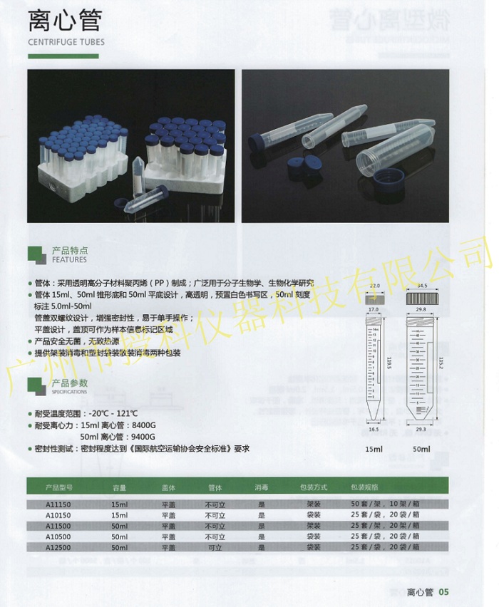 授科訂貨號(hào):離心管15ml、50ml