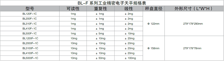 BL-F 天平均具有過載保護裝置,在稱量過程中意外過載或沖擊不會對天平性能產(chǎn)生影響。此外, RS-232 接口及多種輸出模式、反應速度設(shè)定及簡單的通訊協(xié)議功能,也便利用戶。