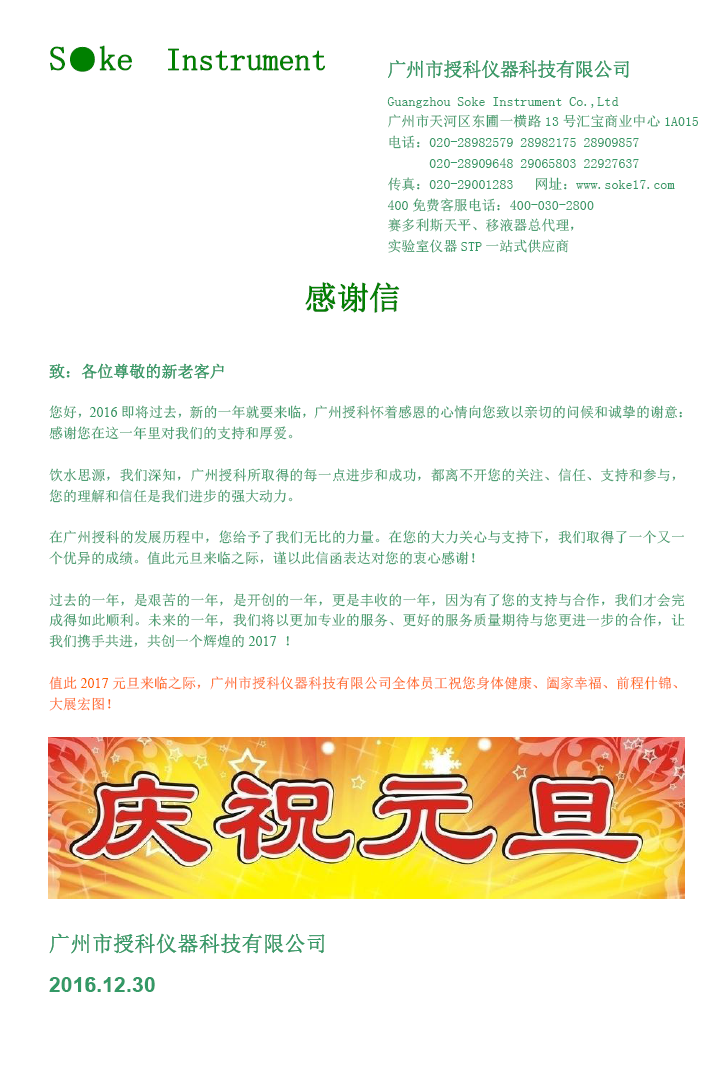 感謝信—感恩2016年您的支持