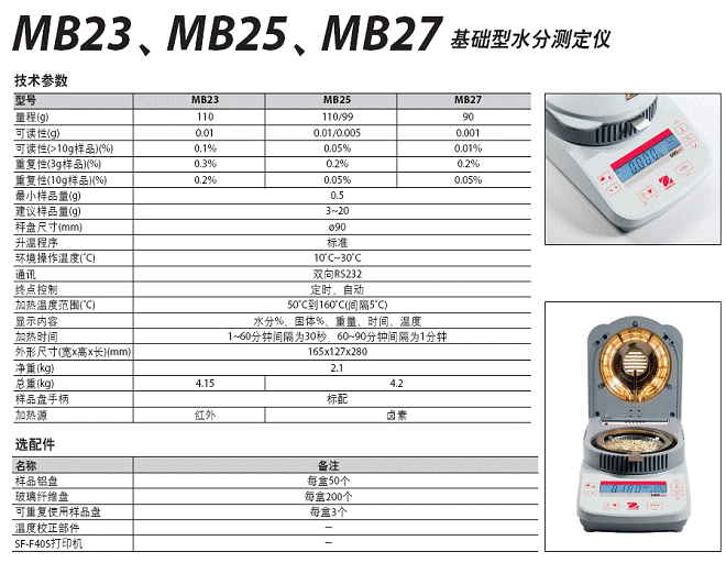 對(duì)于水份儀來說,奧豪斯MB23的價(jià)格有一定的殺傷力,但是它的稱量精度只有0.01g