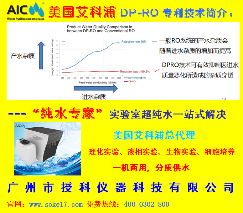 而美國(guó)艾科浦公司的DP-RO專利技術(shù)可以圓滿的解決這一棘手的問題。DP-RO技術(shù)抵御源水水質(zhì)變化的能力特別強(qiáng),即使是硬度很高的井水也沒有任何問題,都可以產(chǎn)生穩(wěn)定而符合國(guó)標(biāo)的三級(jí)水,極大的保護(hù)了后端純化柱的使用壽命,極大的降低了超純水的產(chǎn)水成本。